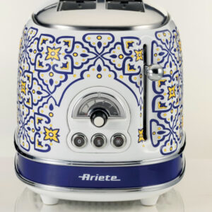 Електричниот тостер од линијата Capri од Ariete пече 4 кришки леб истовремено, без стеги, со 2 посебни прегради и можност да го изберете нивото на запечување и препечување на лебот, спрема вашите преференци, благодарение на 6-те нивоа што можат да се изберат со копчето.